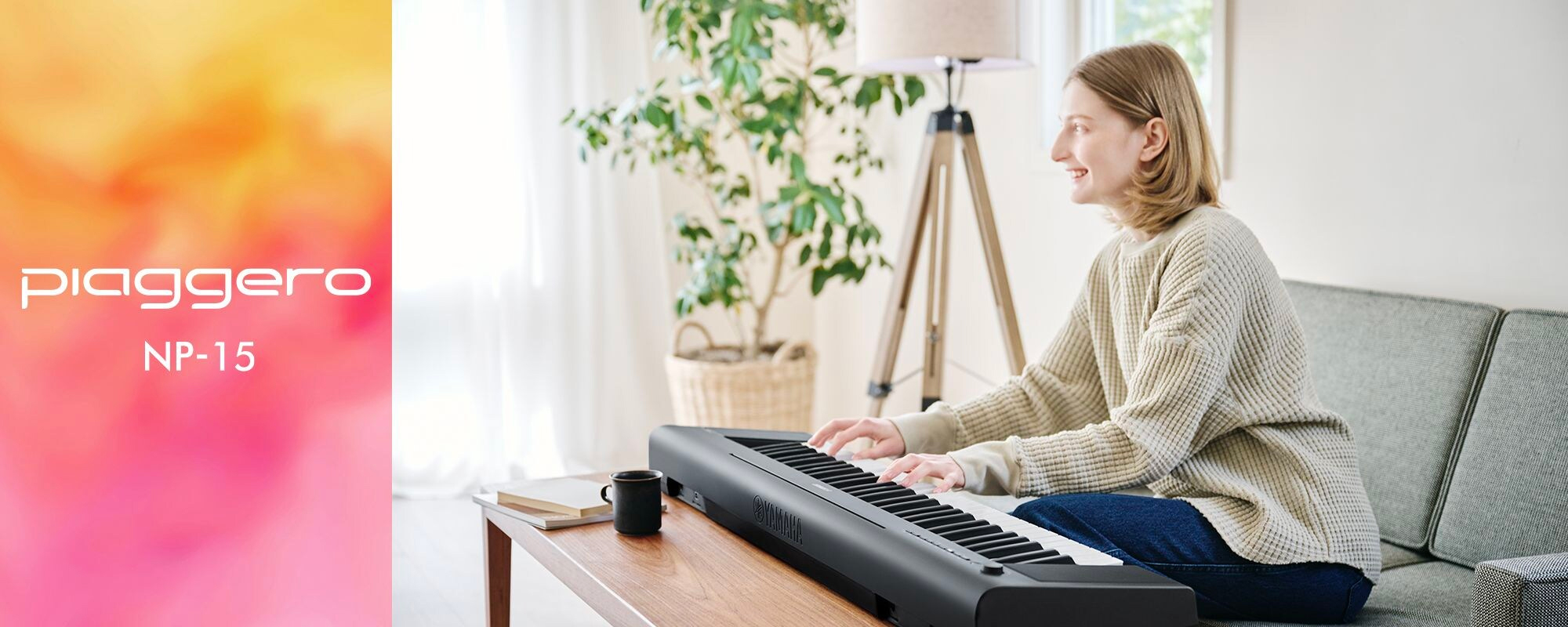 NP-15屬于 "Piaggero "系列,結合了 "Piano(鋼琴) "和 "leggero(輕快的) "一詞,后者是一個音樂術語,意思是 "輕快的、輕巧的"。正如其名,NP-15非常輕,即使對于便攜式鍵盤來說也是如此,因此你可以把它帶到任何地方。在室內、室外,甚至在旅行中,都可以放心地把它帶到你喜歡的地方去練習。
